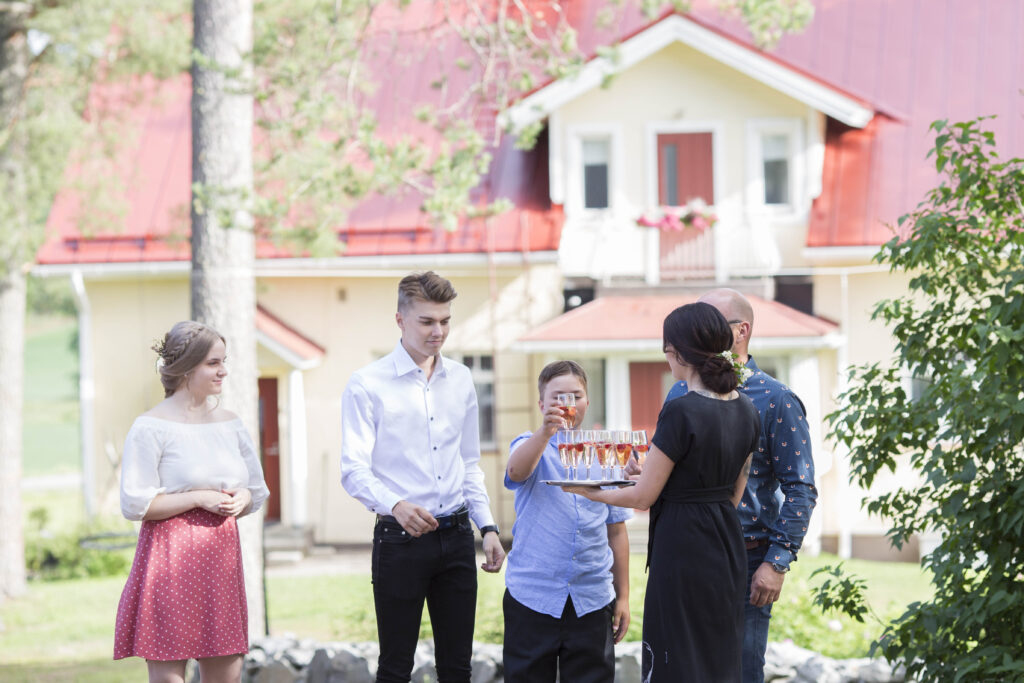 Ympärivuotisena juhlasalina palvelee päärakennuksen sali. Kesäisin myös kaunis pihapiirimme ja tunnelmallinen riihi sopivat mainiosti juhlien järjestämiseen.