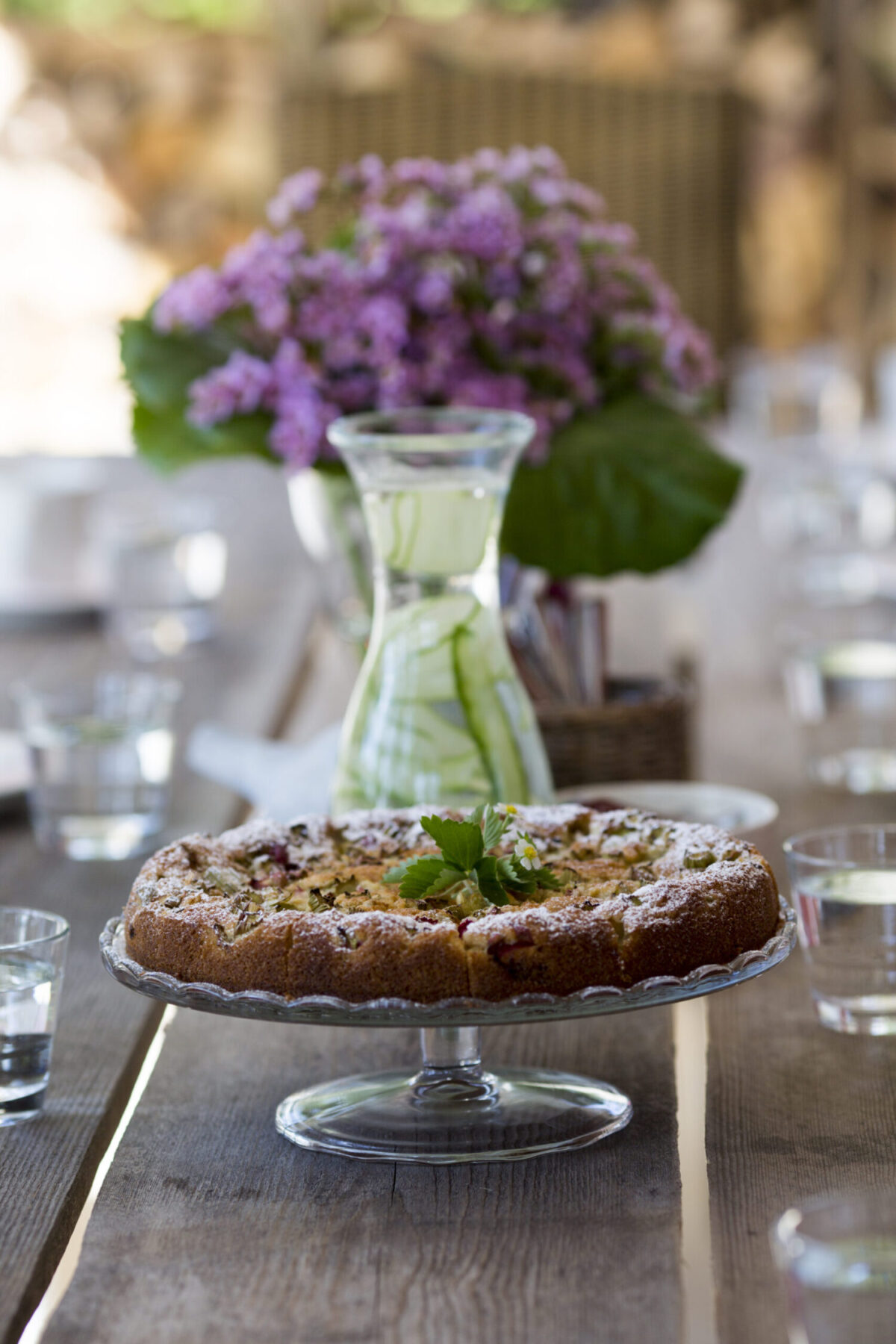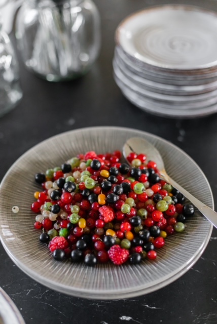 tarjolla oman kasvimaan herkkuja; metsistämme marjoja ja sieniä; kurkkuja, tomaatteja, paprikoita, yrttejä sekä oman pihamme viinimarjoja, tyrnejä ja omenoita. Joka vuosi kokeilemme jotain uutta. Satokautena tietysti myös säilömme talven varalle hillot, mehut, sienet, hillokkeet ja vichykurkut, jotta nautittavaa riittää läpi vuoden.